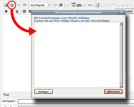 Wenn Sie Texte aus Word-Dokumenten einfügen möchten, benutzen Sie bitte die Schaltfläche